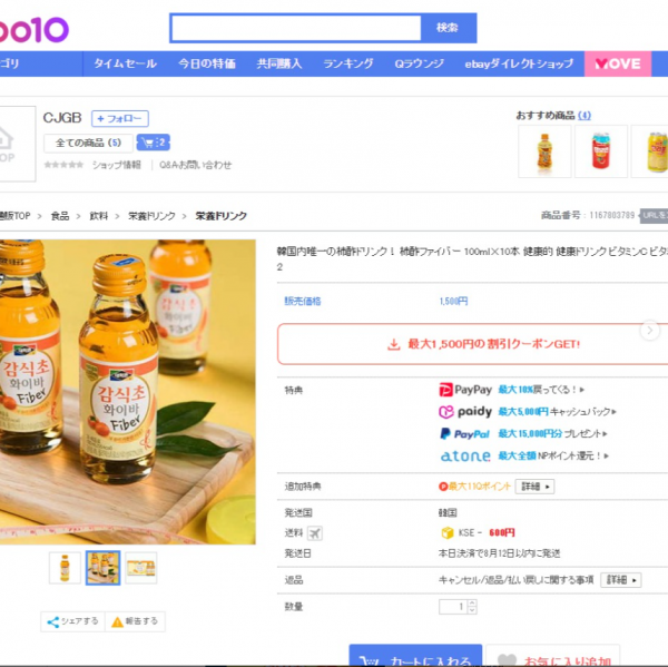 감식초화이바 일본 대형 쇼핑몰 Q10 입점